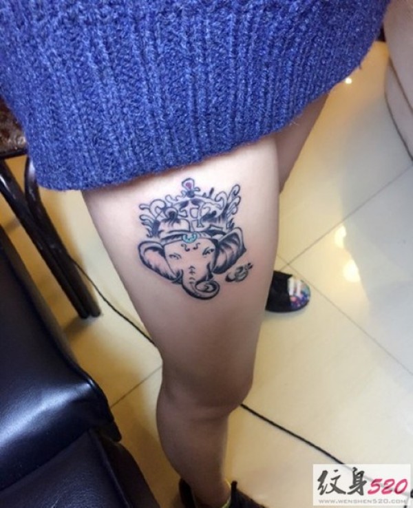 腿部经典象神纹身图案