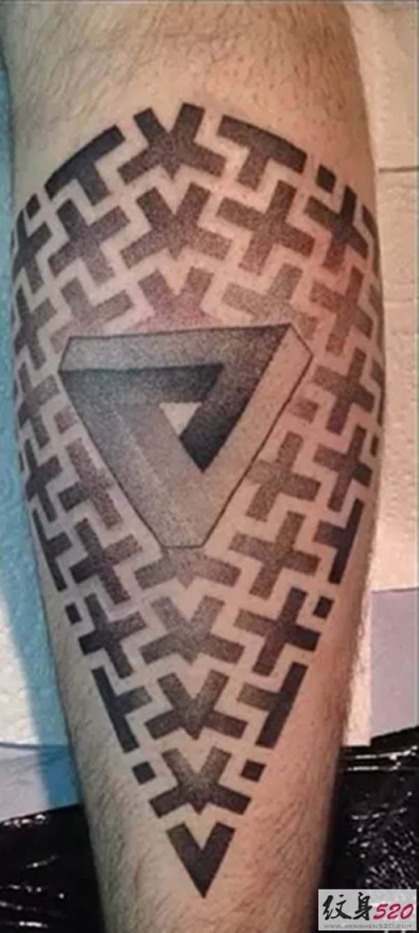 腿部黑灰点刺纹身图案