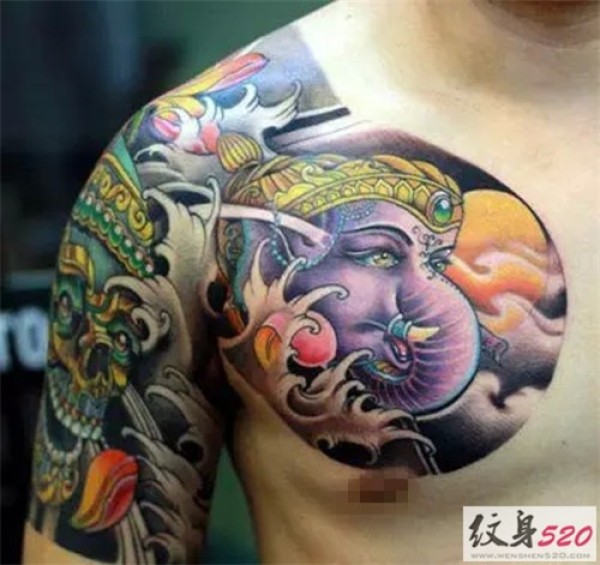 女生肩花纹身_15张女性双肩对称的肩花纹身图案作品图片