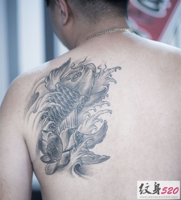 后背经典鲤鱼纹身