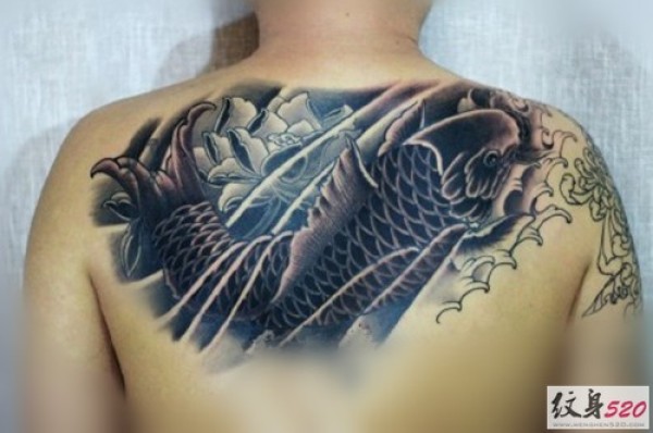 后背经典鲤鱼纹身