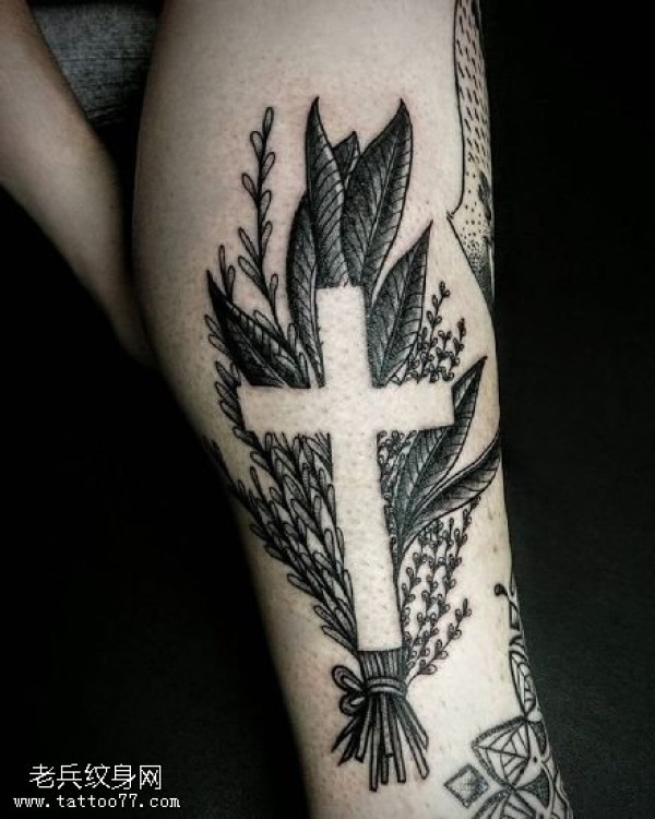 小腿上的十字架纹身图案