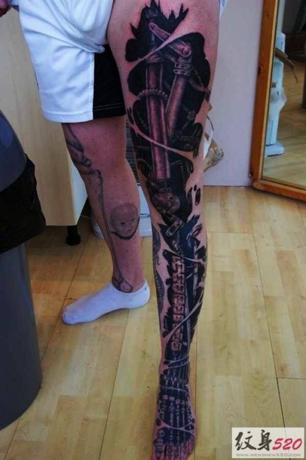 花腿纹身--一组大黑腿纹身图案作品欣赏