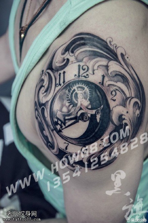 女生肩花纹身_15张女性双肩对称的肩花纹身图案作品图片
