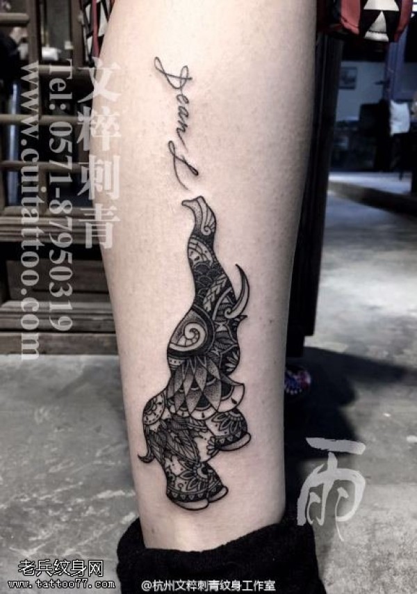小腿上一款大象纹身图案_腿部纹身图案大全_纹身图吧
