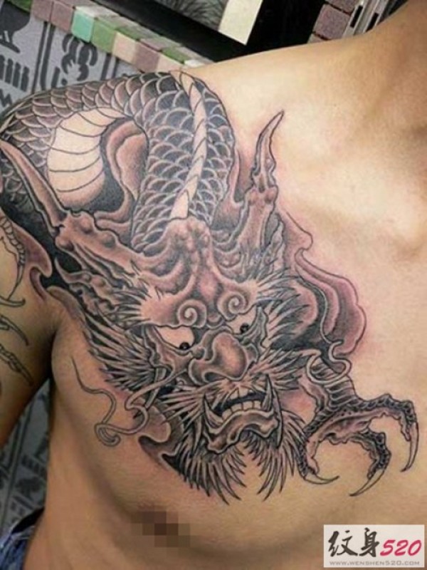 龙纹身手稿_一组老传统黑灰龙手稿纹身图案