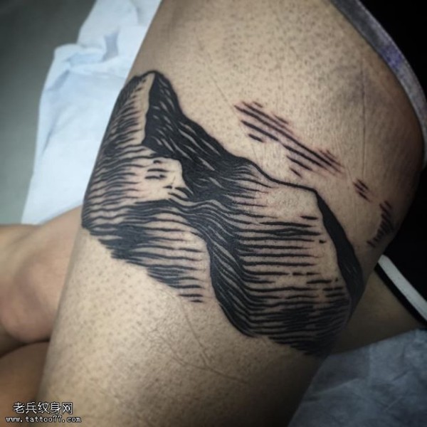 大腿线条山脉纹身图案