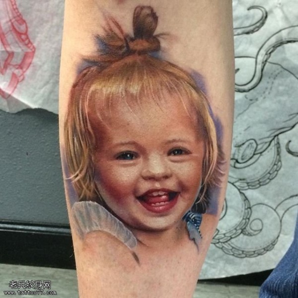 清纯女孩腿上可爱肖像纹身图片_肖像纹身图案大全_纹身图吧
