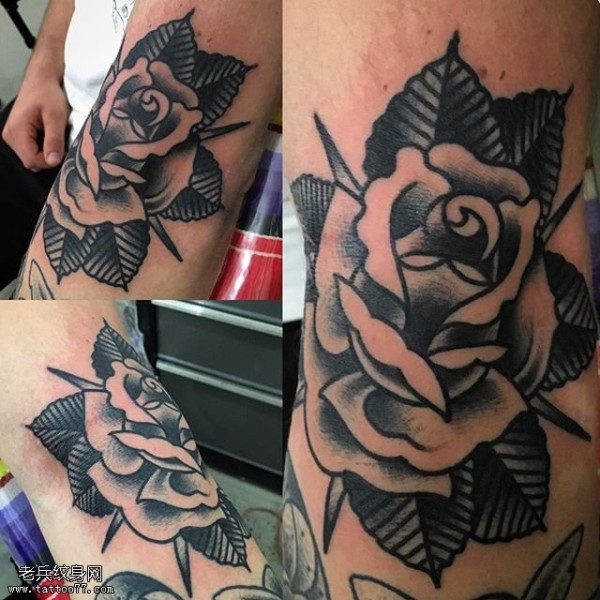 欧美玫瑰纹身 男生手臂上花朵纹身图片