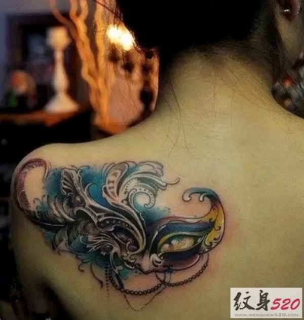 女生肩花纹身_15张女性双肩对称的肩花纹身图案作品图片