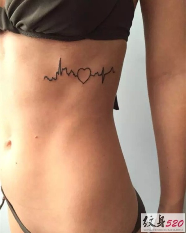 腰间律动的心电图纹身图案