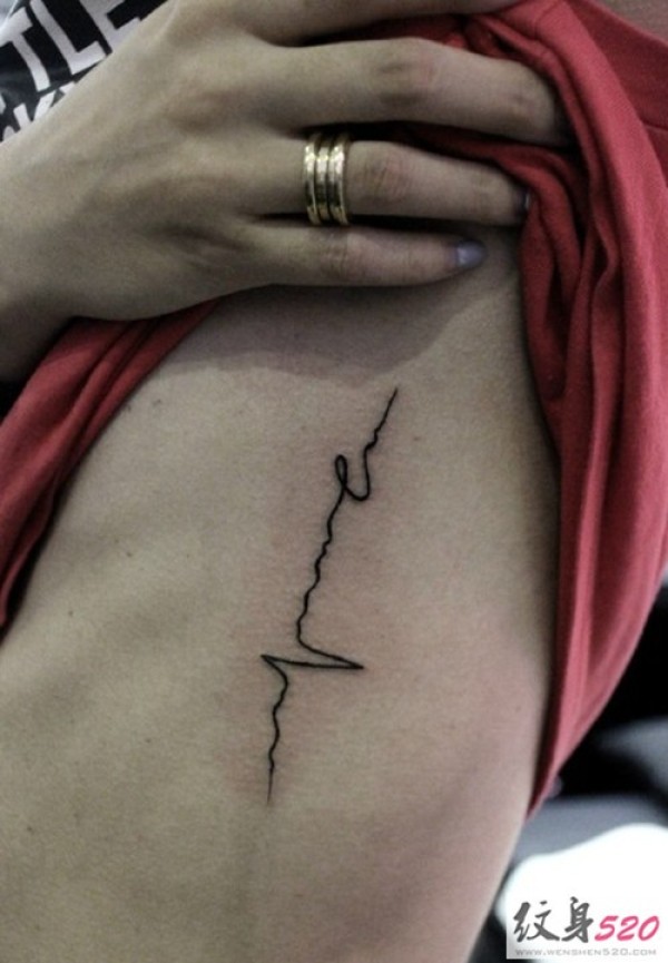 女生后腰纹身黑白灰风格抽象线条纹身图案