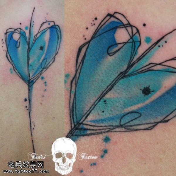 水彩一箭穿心纹身图案