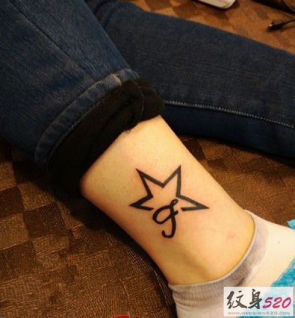 小腿上闪闪的五角星纹身