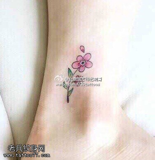 清新小桃花脚踝纹身_脚部纹身图案大全_纹身图吧