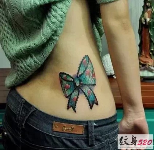 分享一款腰部时尚性感的蝶恋花纹身图案_腰部纹身图案大全_纹身图吧