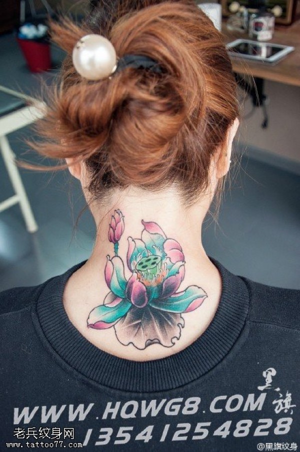 脖子上的荷花纹身图案