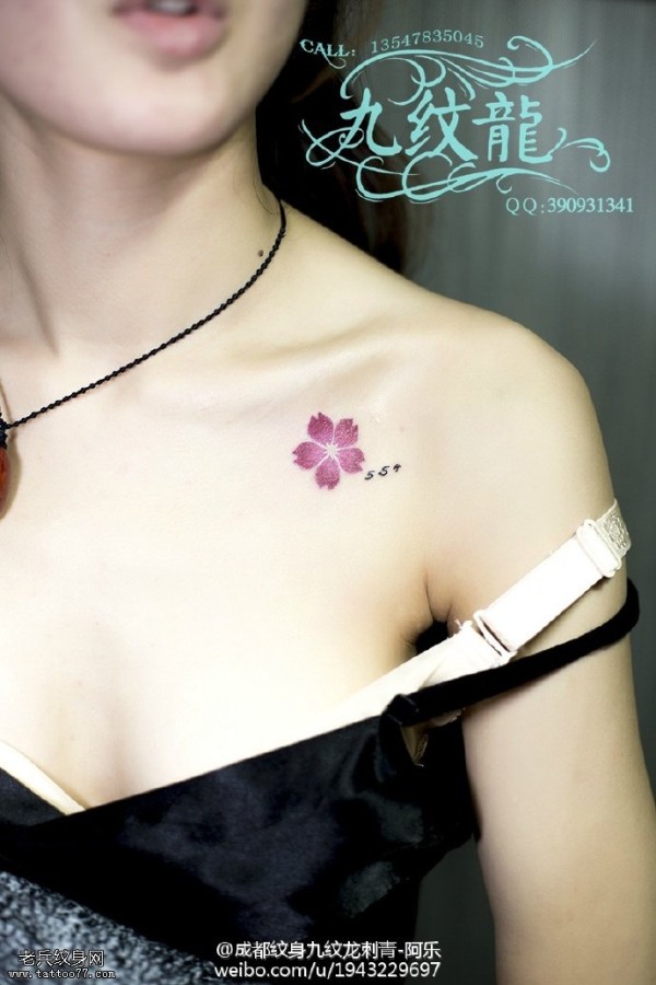 肩部的精美小樱花纹身图案