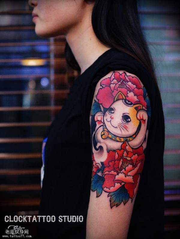 女生肩花纹身_15张女性双肩对称的肩花纹身图案作品图片