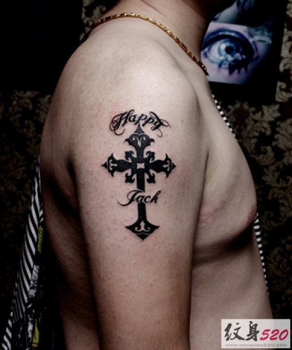 时尚的男士大臂十字架纹身图案