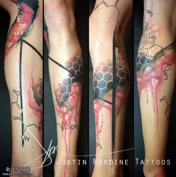 小腿水彩图腾纹身图案