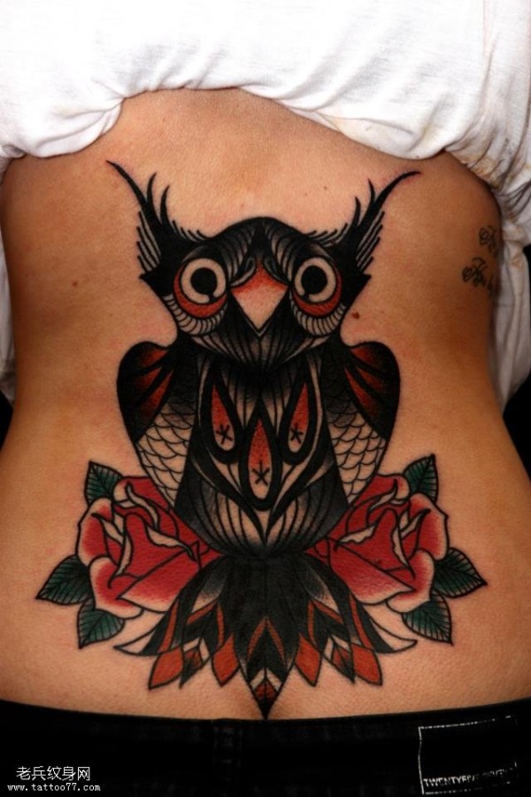 腰部的乌鸦纹身图案