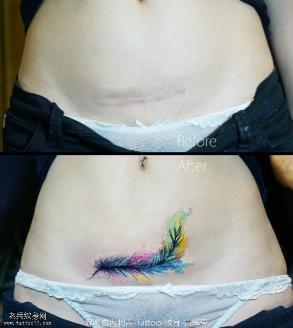 遮盖伤疤水彩的羽毛纹身图案