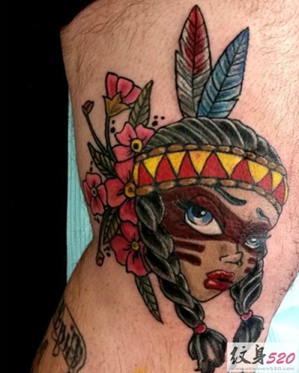 清纯女孩腿上可爱肖像纹身图片_肖像纹身图案大全_纹身图吧
