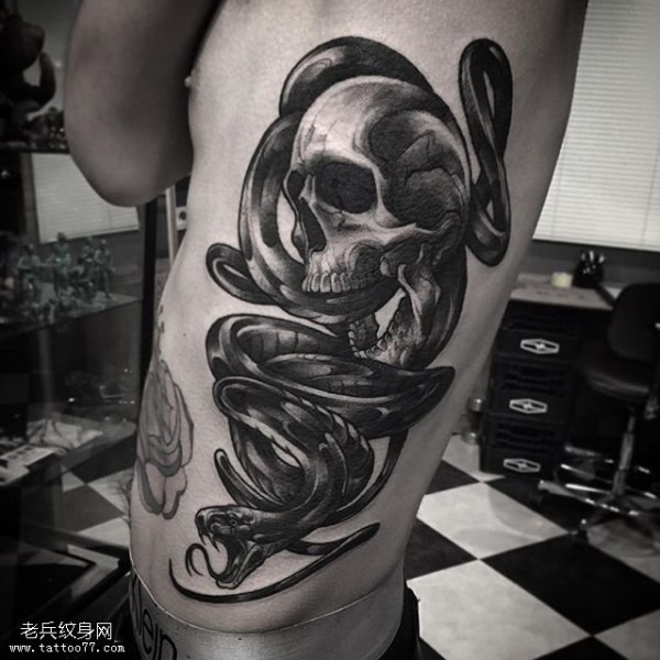 侧腰女骷髅刺青图案图片_骷髅纹身图案大全_纹身图吧