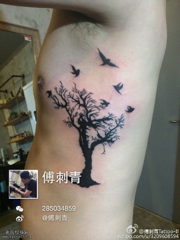 侧背的老树纹身图案