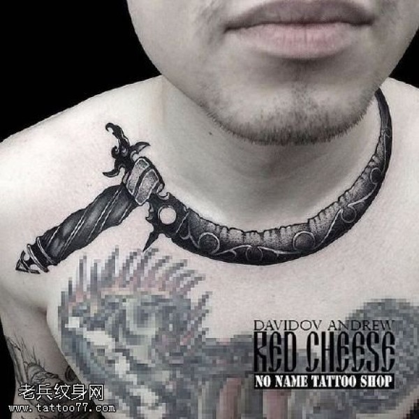 脖子上的镰刀纹身图案