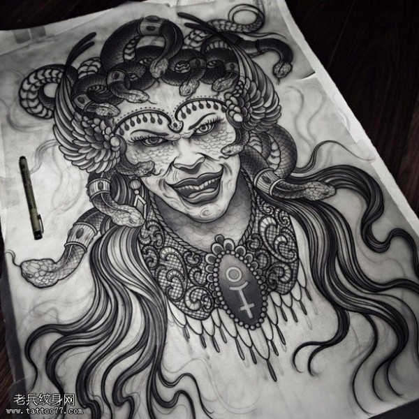 能面万媚纹身手稿_52张日式能剧面具纹身手稿图案素材欣赏