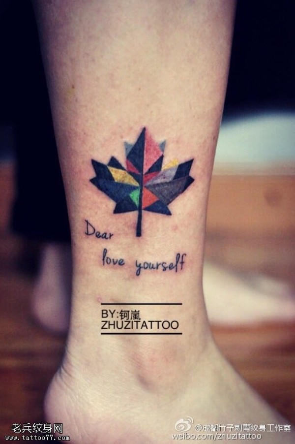脚腕上的枫叶纹身图案