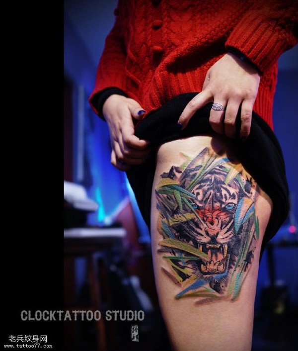 臀部张牙舞爪的老虎纹身图案