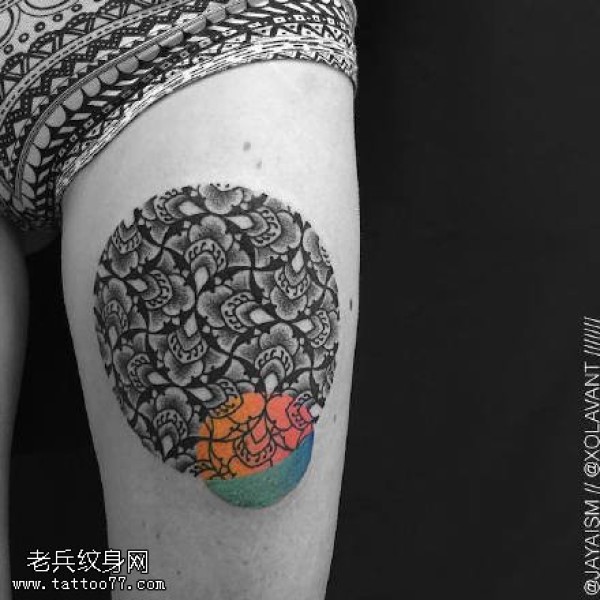 传统花腿纹身--18张传统风格的大花腿纹身图案作品
