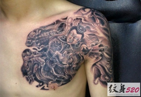女生肩花纹身_15张女性双肩对称的肩花纹身图案作品图片