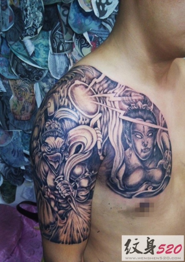 女生肩花纹身_15张女性双肩对称的肩花纹身图案作品图片