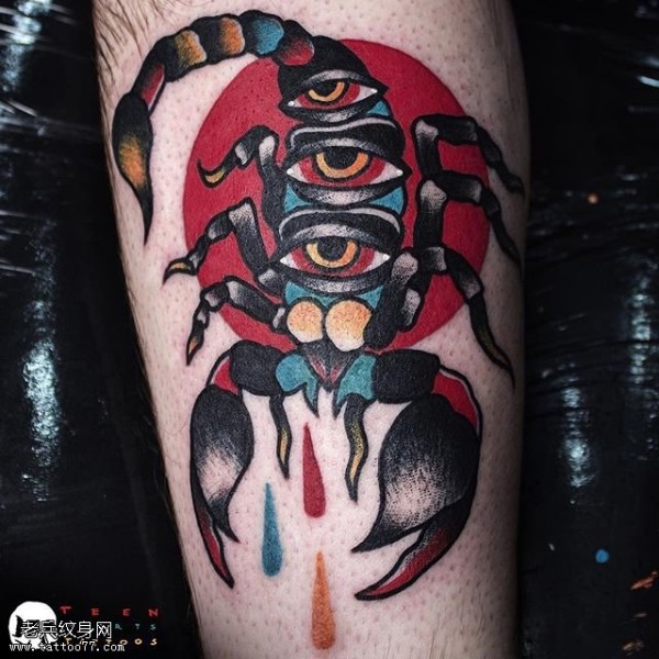 小腿部的蝎子纹身图案