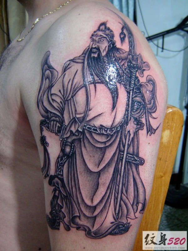 胳膊上正义的关公纹身