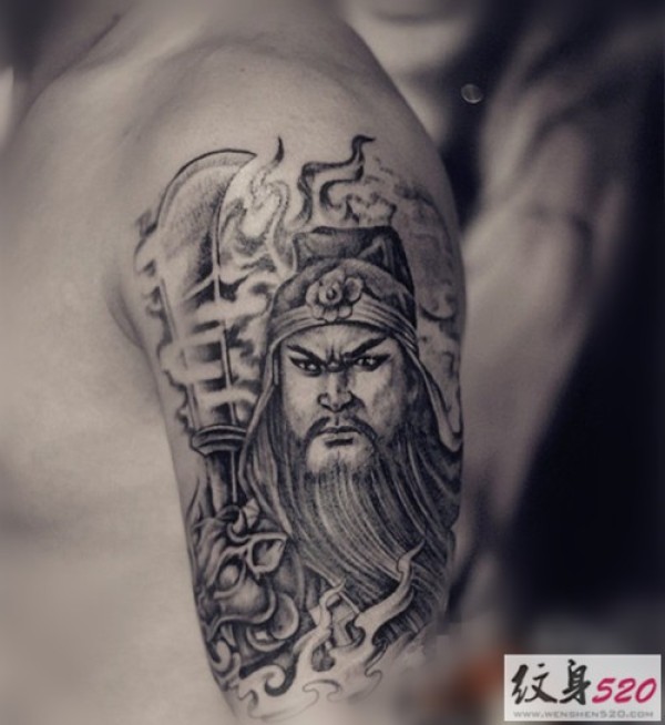 胳膊上正义的关公纹身