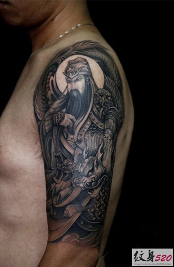 胳膊上正义的关公纹身