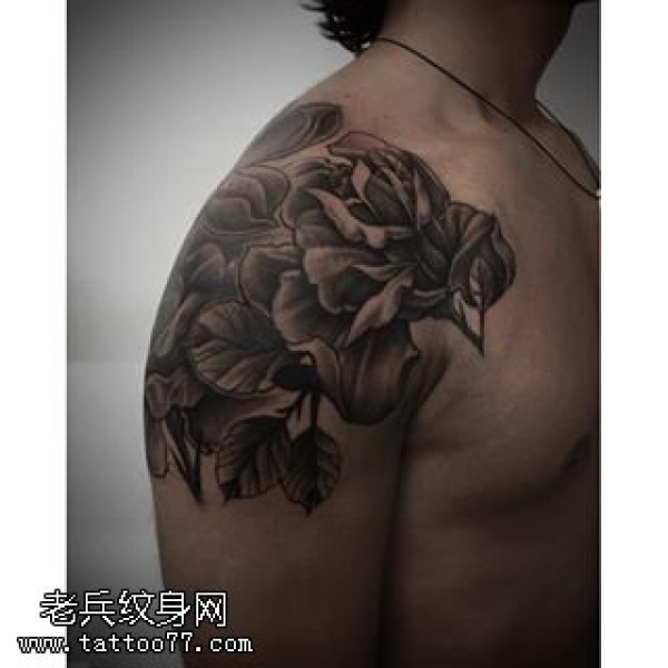女生肩花纹身_15张女性双肩对称的肩花纹身图案作品图片