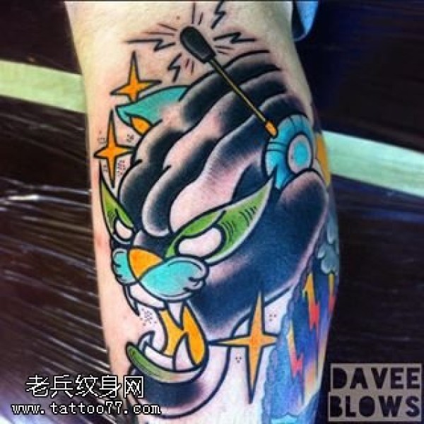 花腿纹身--一组大黑腿纹身图案作品欣赏