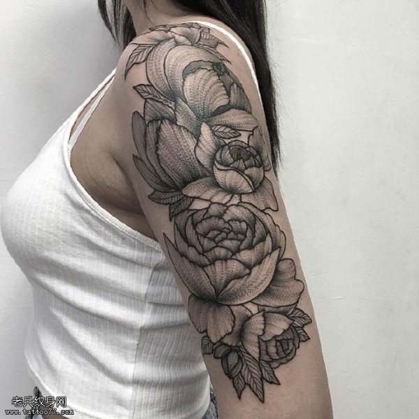 女生肩花纹身_15张女性双肩对称的肩花纹身图案作品图片
