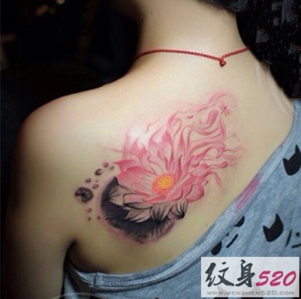 女生肩花纹身_15张女性双肩对称的肩花纹身图案作品图片
