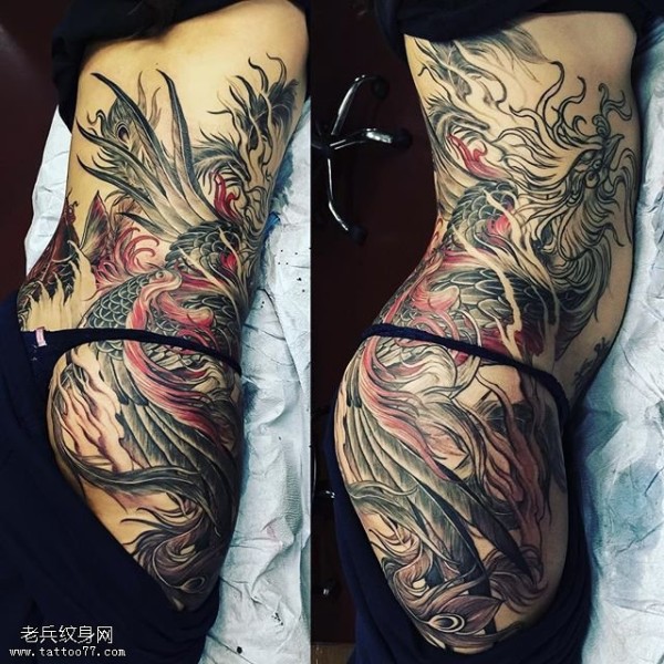 臀部的大凤凰纹身图案