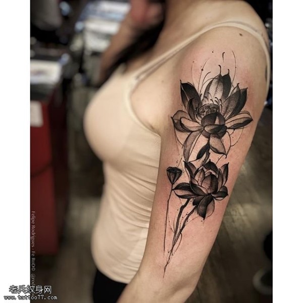 女生肩花纹身_15张女性双肩对称的肩花纹身图案作品图片