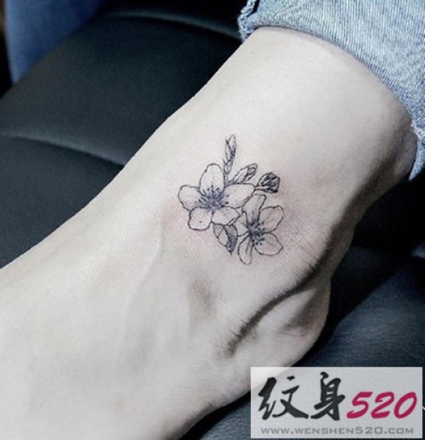 清新小桃花脚踝纹身_脚部纹身图案大全_纹身图吧