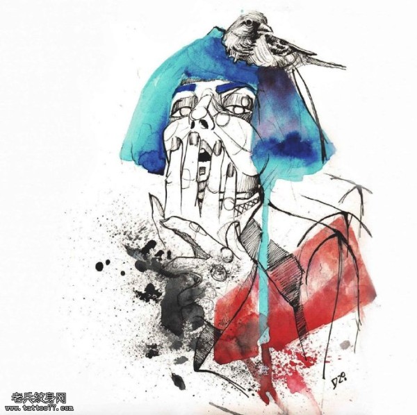 手稿涂鸦肖像纹身图案