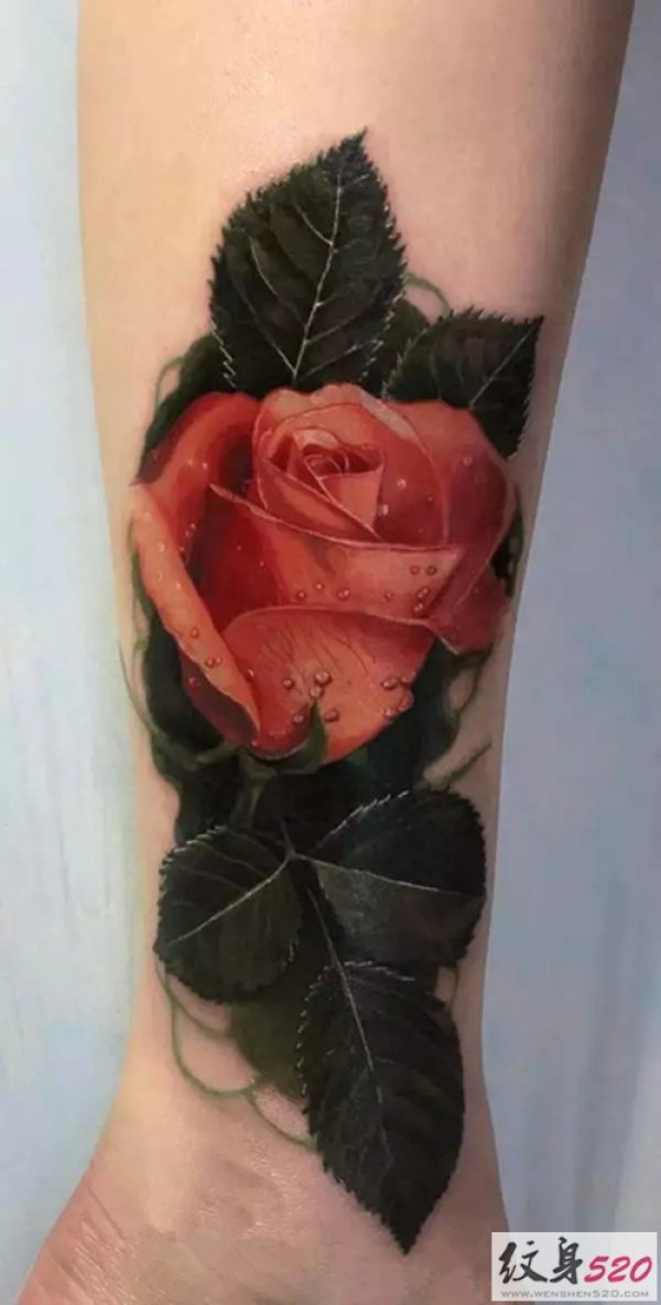欧美玫瑰纹身 男生手臂上花朵纹身图片